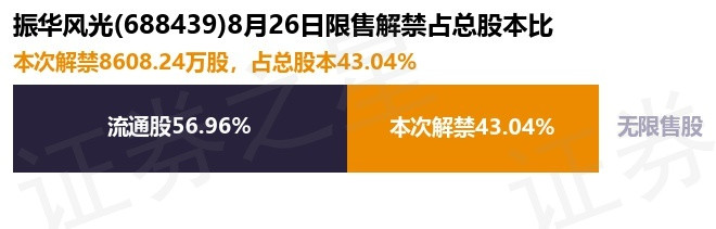 证券之星消息,根据市场公开信息整理,振华风光(688439)于8月26日将有8608.24万股限售股份解禁,为公司首发原股东限售股份,占公司总股本43.04%。(本次数据根据历史公告整理得出,实际情况以上市公司最新公告为准)最近一年内,该股累计解禁149.28万股,占总股本的0.75%。本次解禁后,公司已无限售股份。具体如下图所示:
